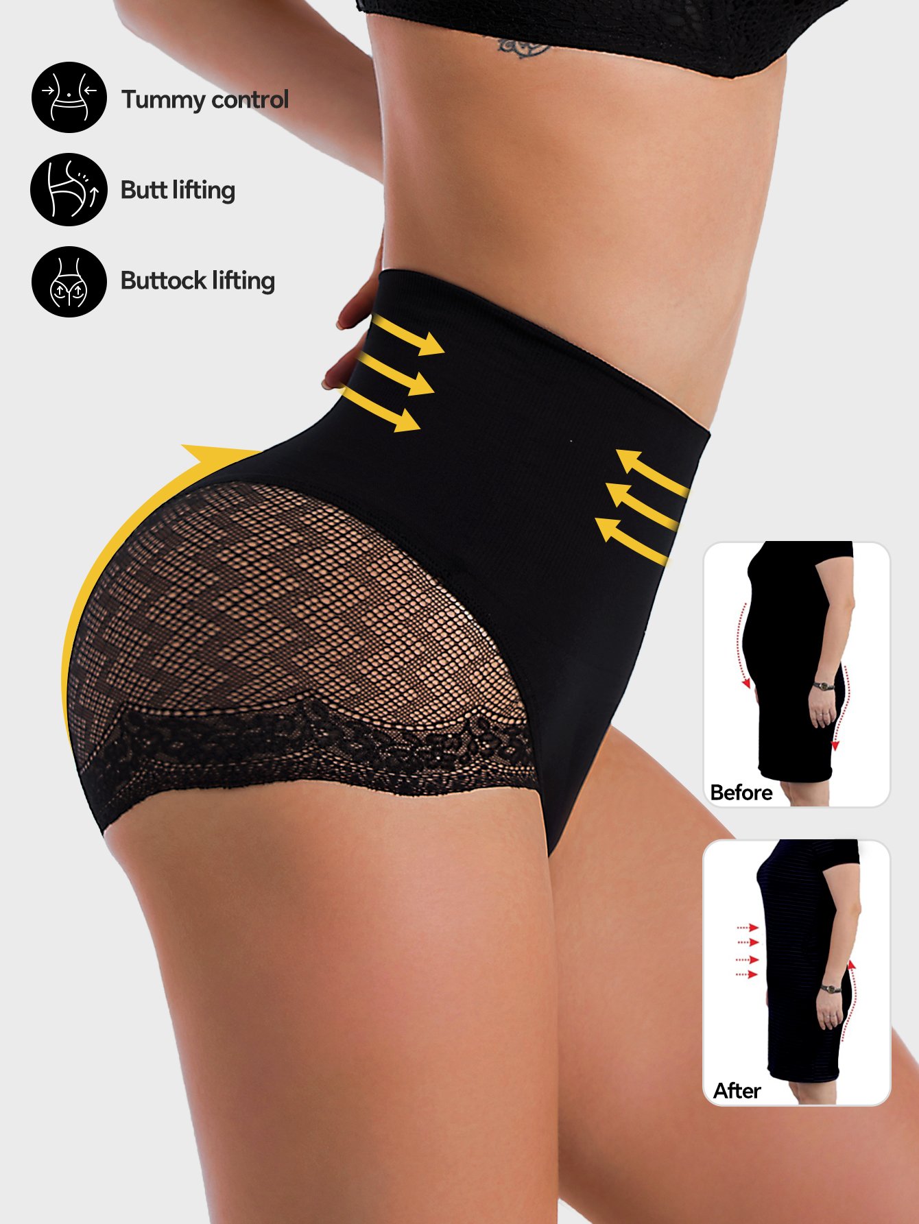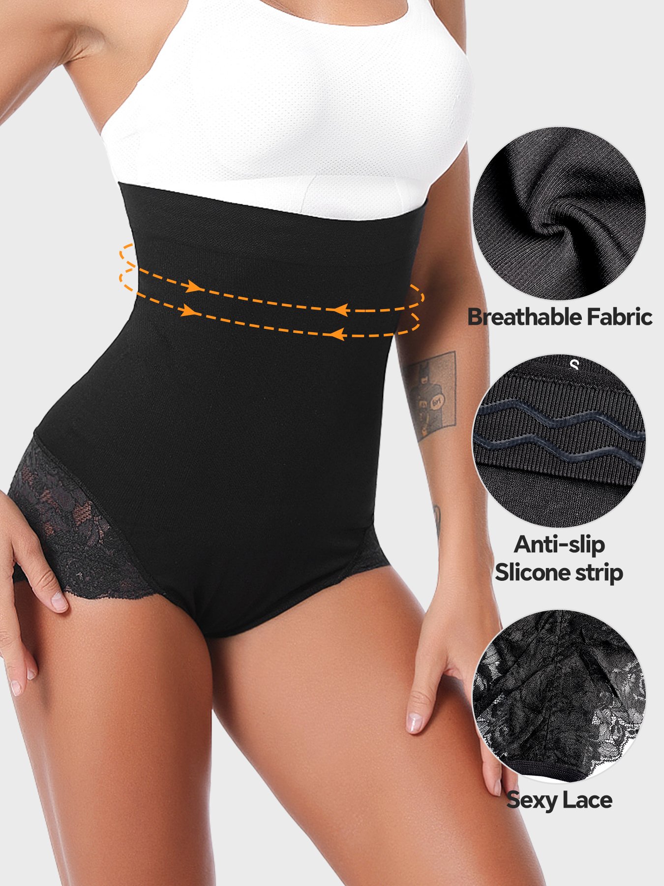 High-Waist Seamless Body Shaper Lace Briefs: Combines seamless design with lace details for a comfortable and stylish fit.