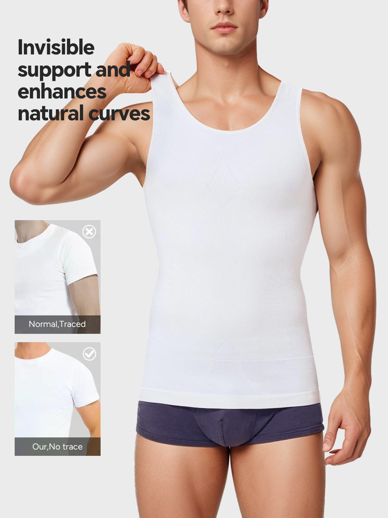 1.Name:Men’s Shapewear Firm Compression for Chest and Breast-White