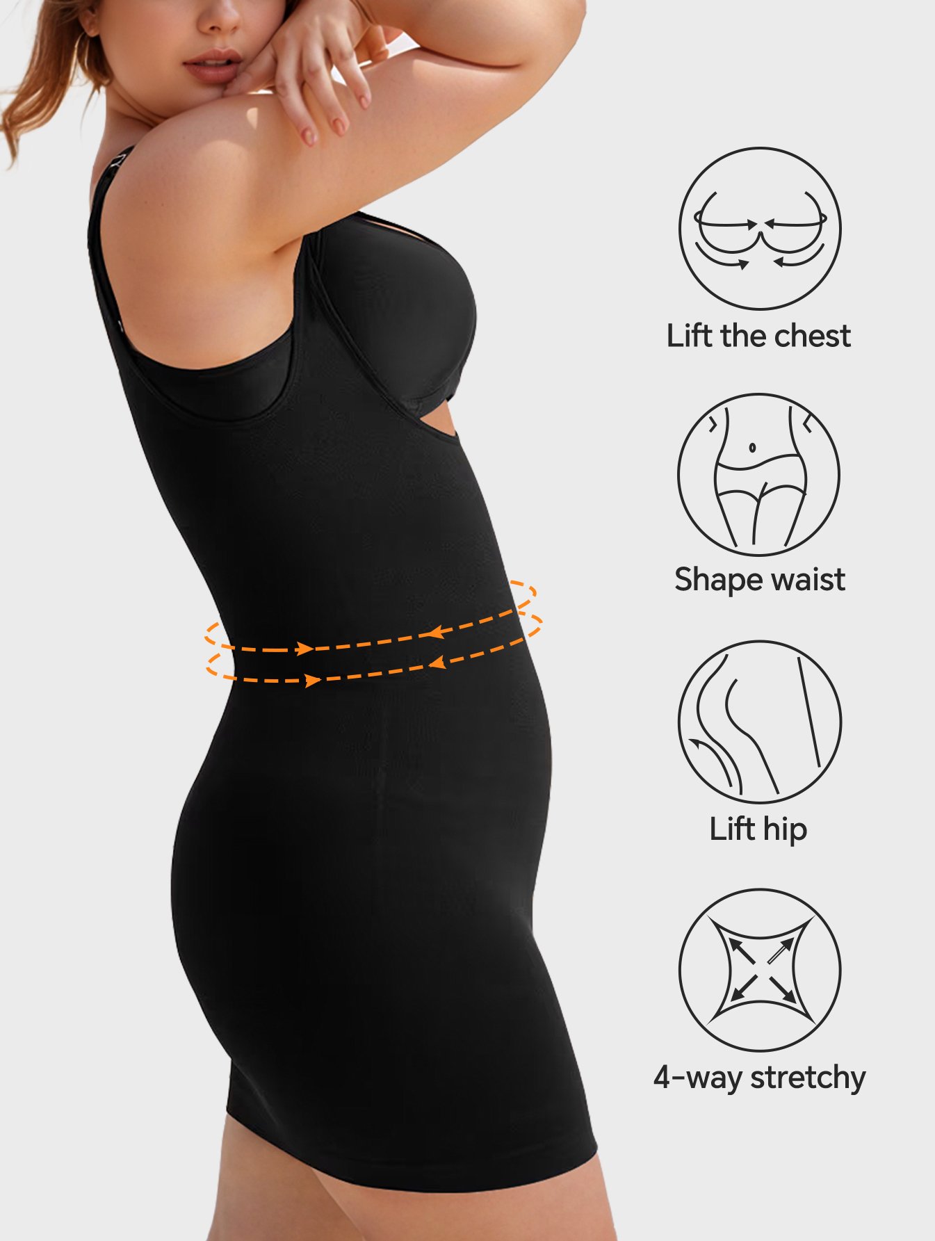 1.Name:Tummy Control Bodysuit with U-shaped Collar